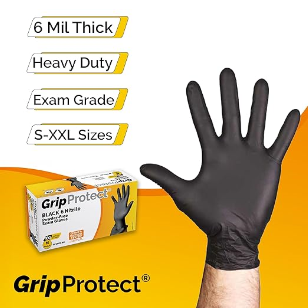 GripProtect 6 Mil Black Nitrile Powder-Free Exam Gloves