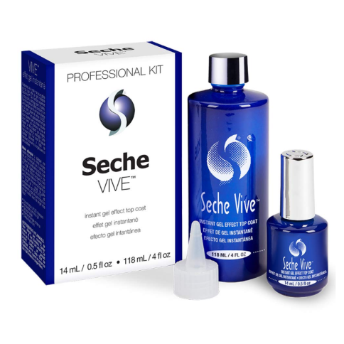 BEST SELLING TOP COAT, SAFE FORMULA: Seche Vive Professional Kit, Instant Gel Effect Top Coat for Nail Polish, 4 oz and 0.5 oz Refill is widely acknowledged as the world's finest top coat. Its formula is safe, cruelty-free, contains no parabens, 100% vegan, no sulfates no triclosan, guaranteed no harmful ingredients for the user. With just one coat, your nail lacquer maintains that I-just-had-a-mani freshness for days, without peeling, chipping, or yellowing.