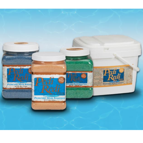 Pedi Redi Plus is a specially formulated powder. It combines sea salt, epsom salt along with other key ingredients to clean the feet and soften calluses and cuticles for easy exfoliation.