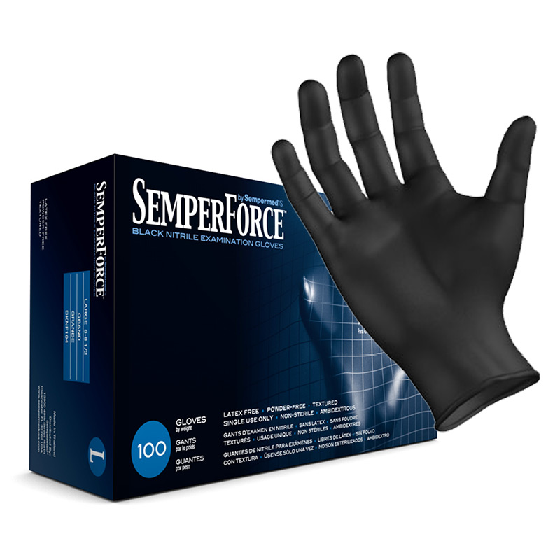SemperForce black nitrile examination gloves are designed for demanding work environments where your safety and comfort are a must. A textured surface promises secure gripping capabilities. SemperForce black nitrile gloves are ideal for automotive, industrial, tattoo, and cosmetology applications.