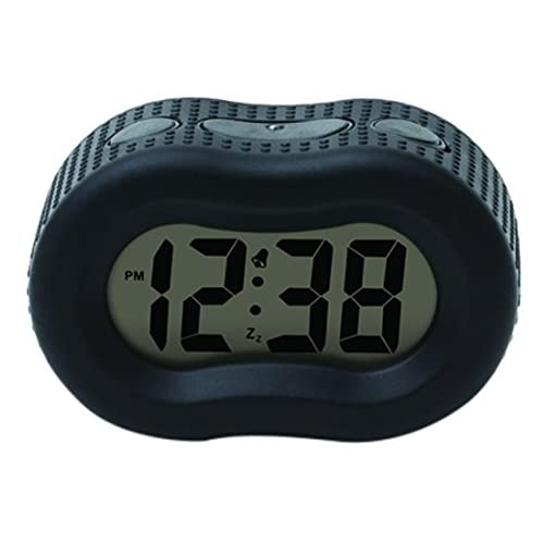 • Complete with a five-minute snooze feature and large 1" LCD display, the Time link Rubber Alarm clock will make sure your up and ready to start your day however you see fit.