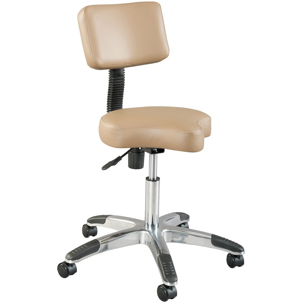Contoured seat-cushion and lumbar support make this stool a preferred seat for those who enjoy more flexibility and wider range of motion in the legs. Five whisper-quiet rolling casters on a large stable base make this stool a simple addition to your treatment room with easy access to supplies and a generous 3” padding for maximized comfort and superior quality. The stool also features a hydraulic piston for smooth height adjustments. With a variety of upholstery options, the stool can be suited to match any decor. All upholstery is flame-resistant and easy to maintain with gentle cleansers. Height extender: 23.75″” to 28″” (58 to 71 cm)